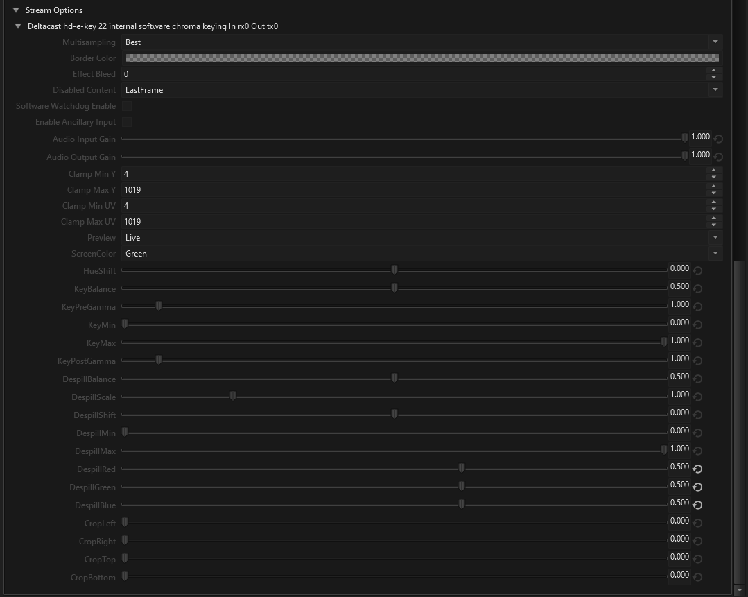 Based on Manual in Internal Software Chroma Keying mode, Ventuz adds a chroma keyer to the video input.