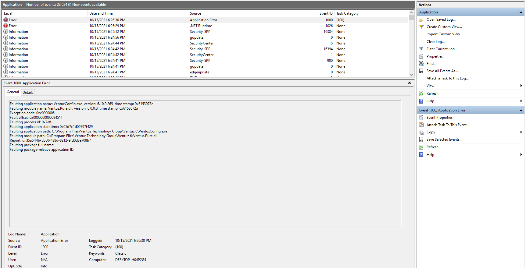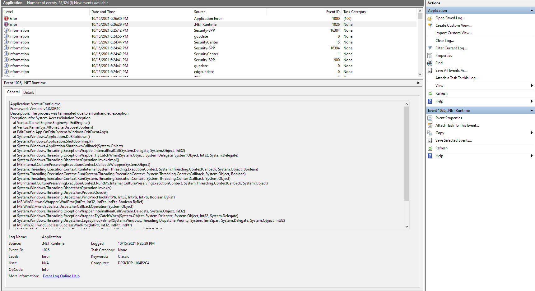 With Ventuz 6.10 release when we open Ventuz configuration there is Errors in event viewer.