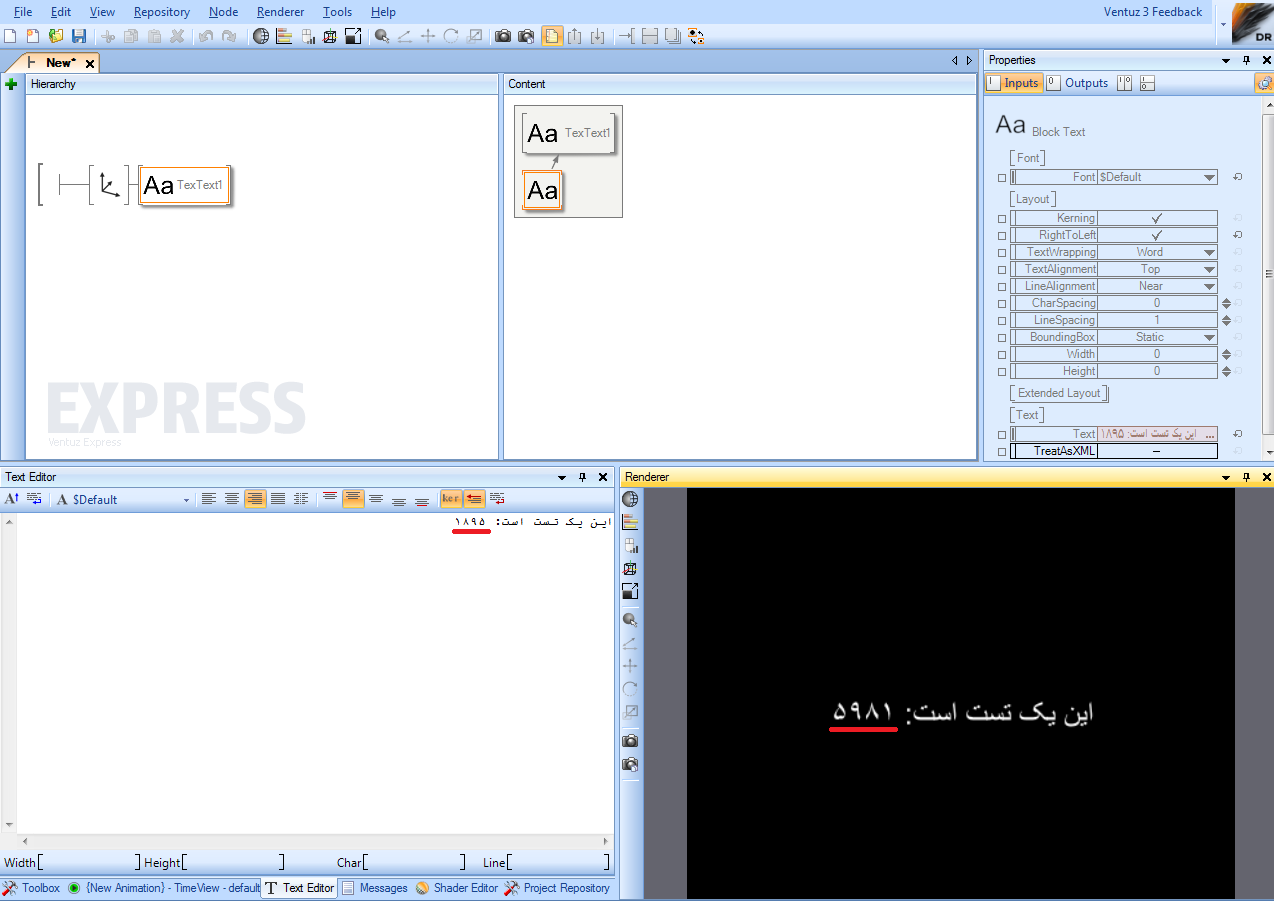 when use RTL language and type numbers, it displays correct in text editor but in render window it is wrong and display in inverse position.