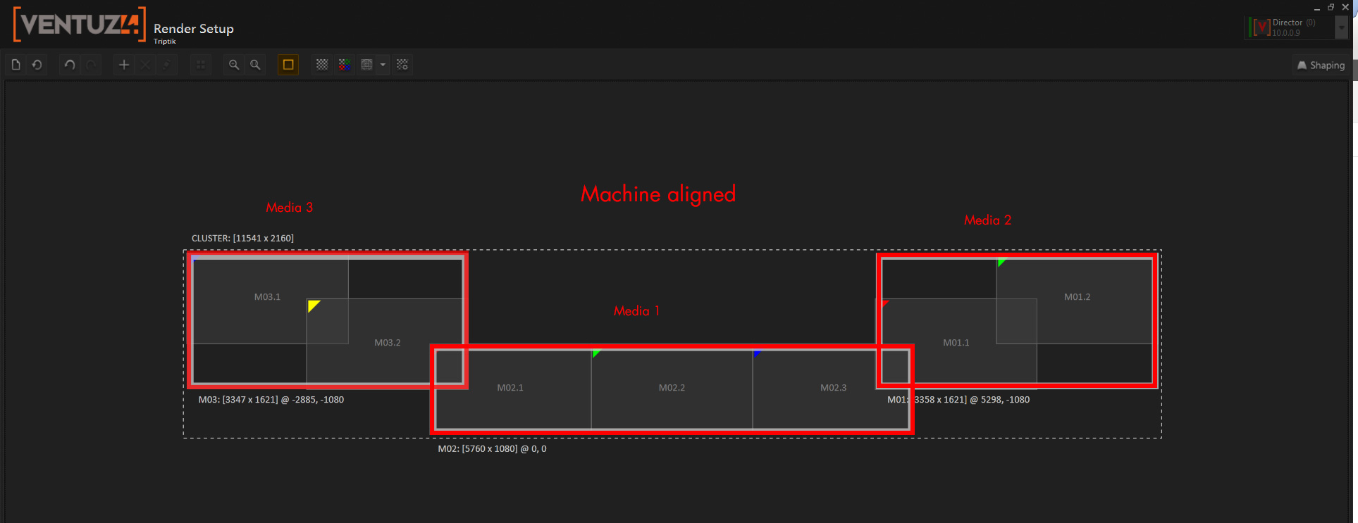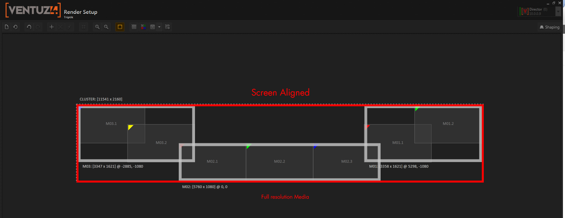 2. There is no way to automatically position texture fulfilling the output as in my 3rd screenshot. This is more performant because you need in this case just a 2xHD resolution movie instead of a 3347x1621px one like in my 2nd screenshot.