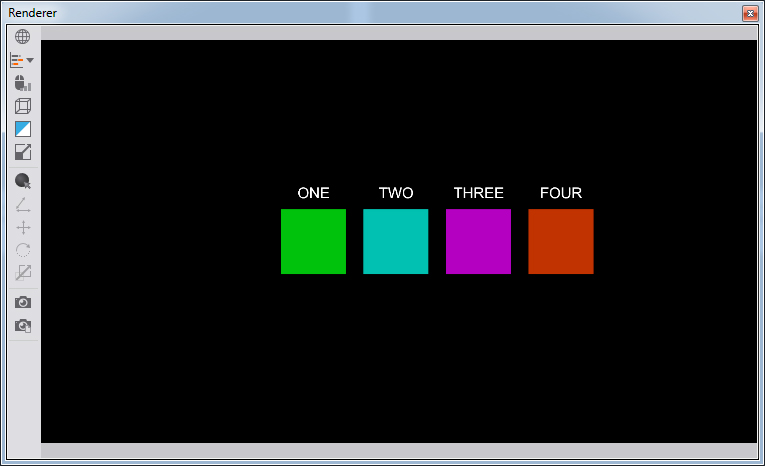 Four containers (1-4) all identical, have a text field, a text colour and a diffuse material value exposed.