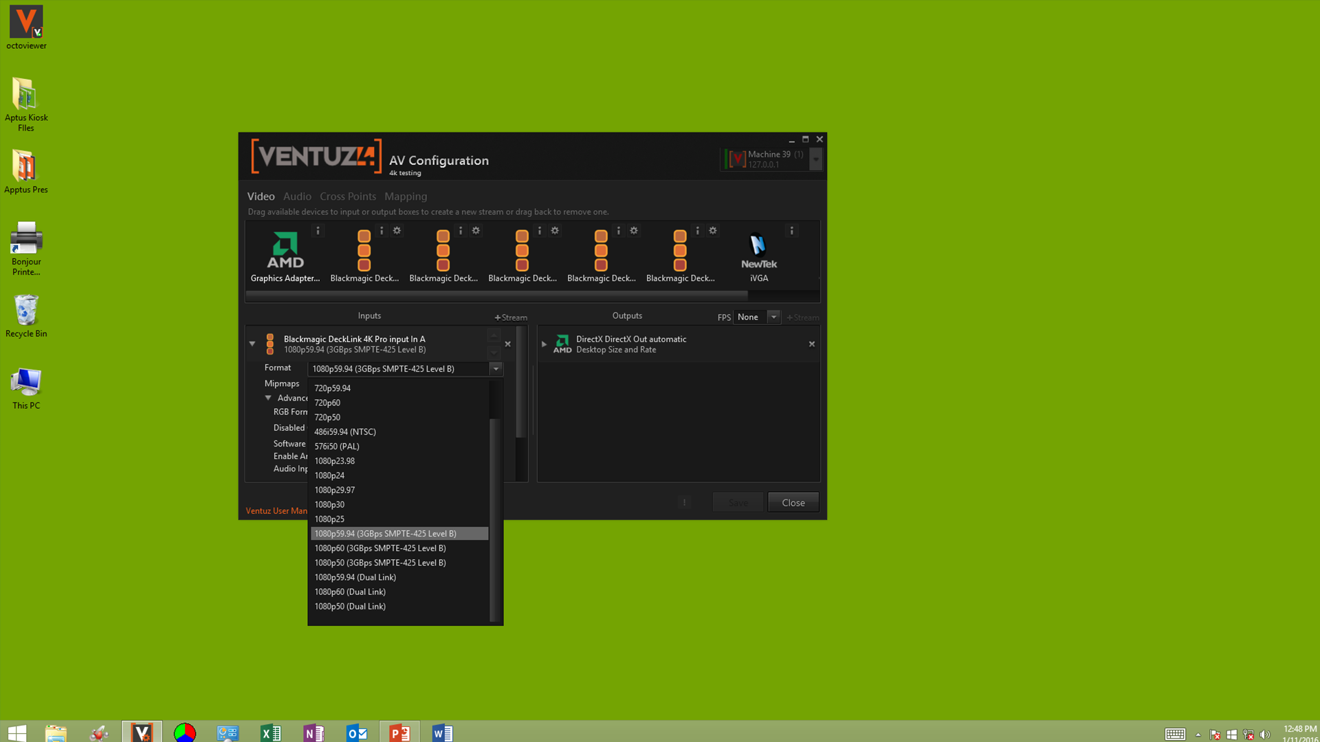 Blackmagic input options in Ventuz Config(1080p and up 4k)