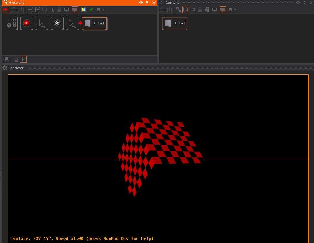 In contrast to Ventuz 4 or earlier versions the render engine is not starting to traverse the scene tree at the selected node. The whole tree is traversed but meshes outside the isolated subtree are skipped.