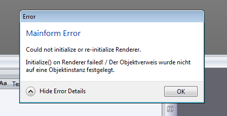 Re: Initialize() on Renderer failed!