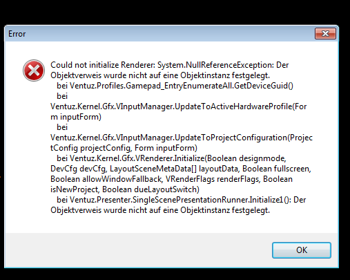 Meantime I always get this message on init ventuz. No Render Window... Any idea?