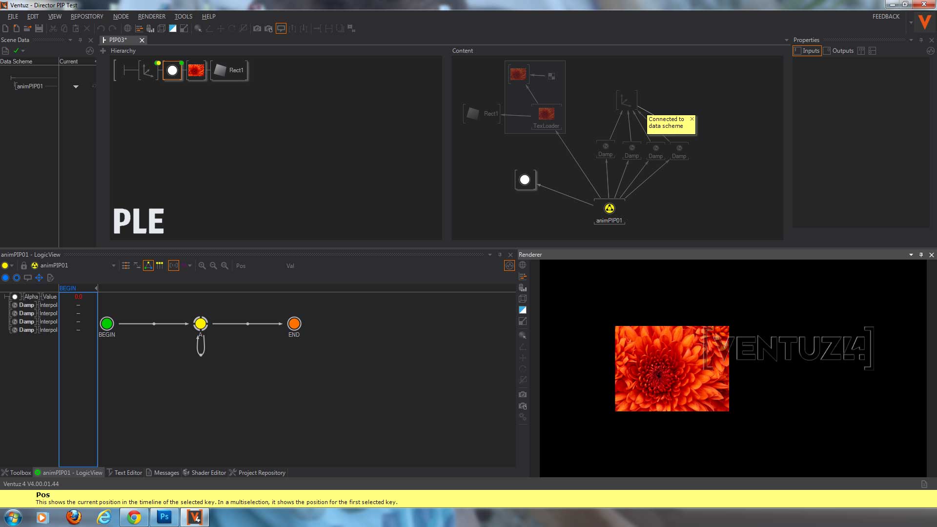 The other automatic mechanism is the relative/absolute management of the content inside the templates. Imagine you have 3 pictures: pa, pb and pc. To the program there are pa and pb, to the preview there are pb and pc. Actually if you do a "take" in Ventuz, pa and pb will fade out and pb and pc will fade in. This is "absolute" change but "relative" change will keep pa and pb and will add pc to the program.