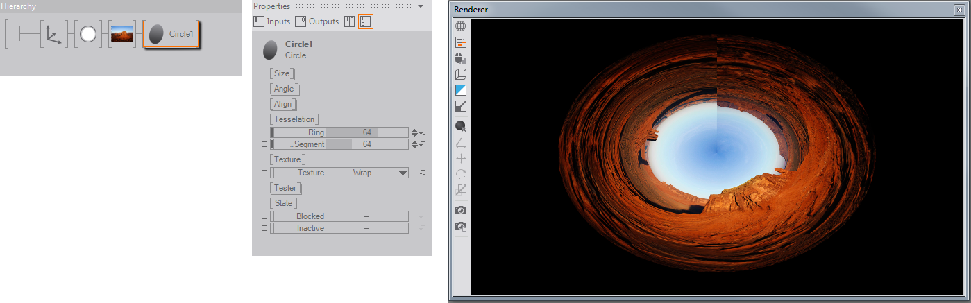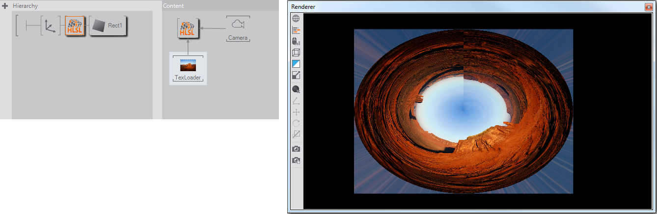 Hi everybody! I need to create a content for the rear projection sphere. So I need to put everything to the render target and then apply a shader, which transforms coordinates to polar, to the texture. I am absolutly nube in shaders and have no time to learn them before the event, maybe somebody can give an advice, what is the best way to solve a problem? I've found this shader for vvvv http://vvvv.org/tiki-download_file.php?fileId=2063 but it doesn't work correct in ventuz, or maybe I am doing smth wrong...