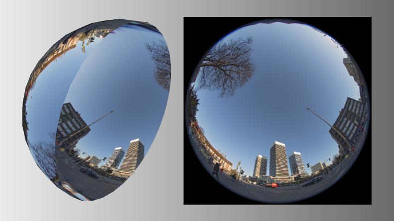 leftside the sphere, rightside the original square-fisheye