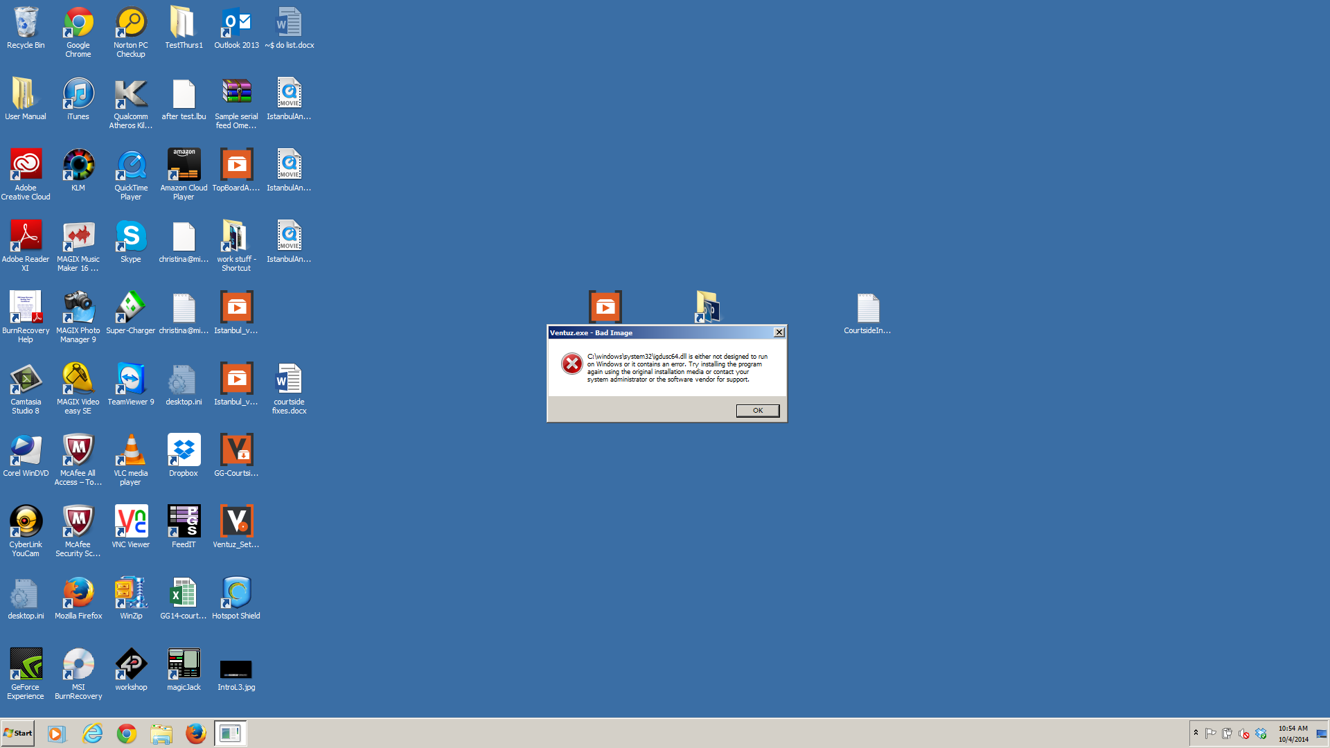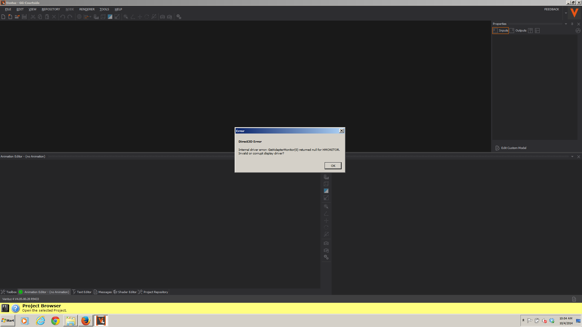 It seems that Ventuz cannot initialize any graphics device (DirectX) anymore. This 'igdusc64.dll' seems to be part of the Intel Graphics Driver Dll.