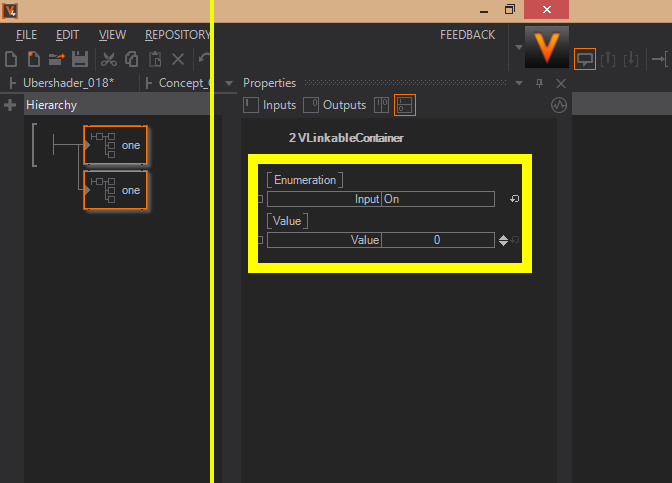 When selecting several containers, you can change their values simultaneously (those values they share). However for an enum you do not get the combobox to select one, even if the enums are exactly the same. In my example I tried it with two copies on an interface container. It would be nice to get the combobox as well.