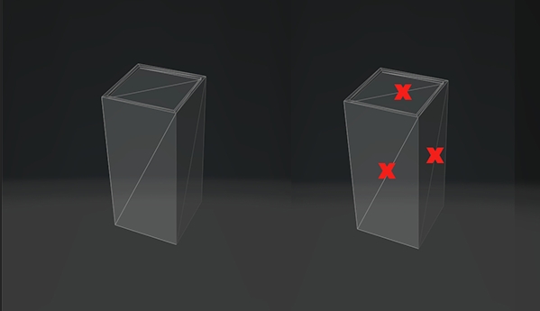 Ventuz supports only triangles, so any polygon is triangulated. That's why you get those diagonals. A quad is divided into two triangles.