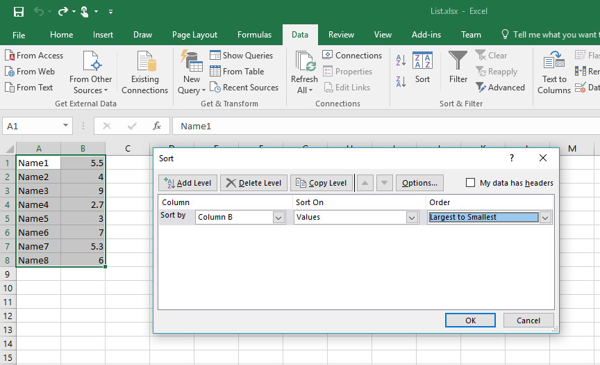 you now have a sorted array and with the reverse bool you can set it from ascending to descending
