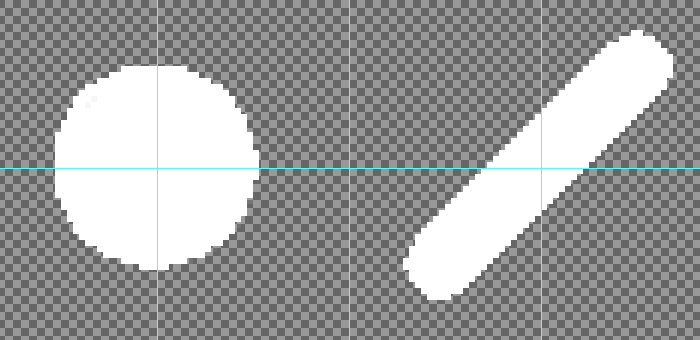I tried to make textures that have either opaque or transparent pixels like these 2 ones on the left, but the result is the same. These textures are saved as PNG by the way. Here is an example of what a yellow brush looks like with different textures. Greetings
