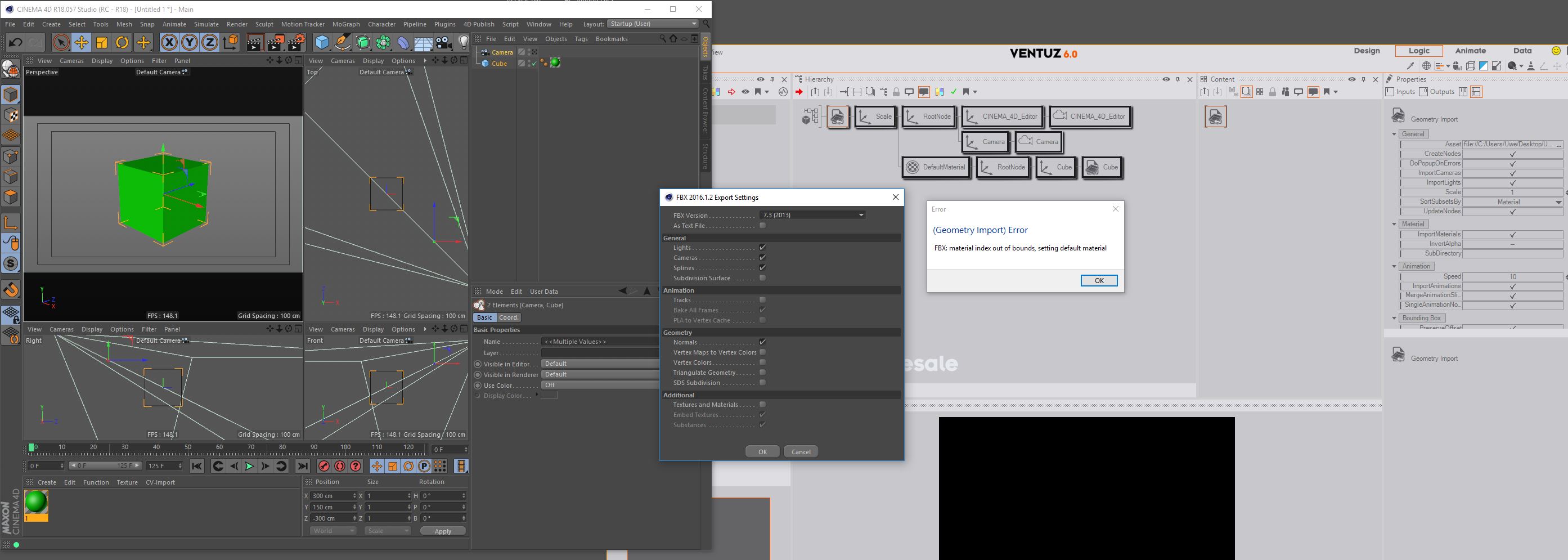 The issue is with Assimp and not Ventuz... the same goes for interexchange between autodesk software, the newer versions of FBX have big issues. If you try to use the newer FBX version between maya, max, modo and so on you will encounter issues as well.. except you use the 7.3. Sometimes there is an issue.. sometimes on another feature.. sometimes it works..