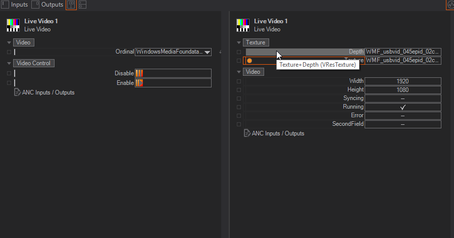 I was wondering what kind of texture the "Depth" output for live feed can get?