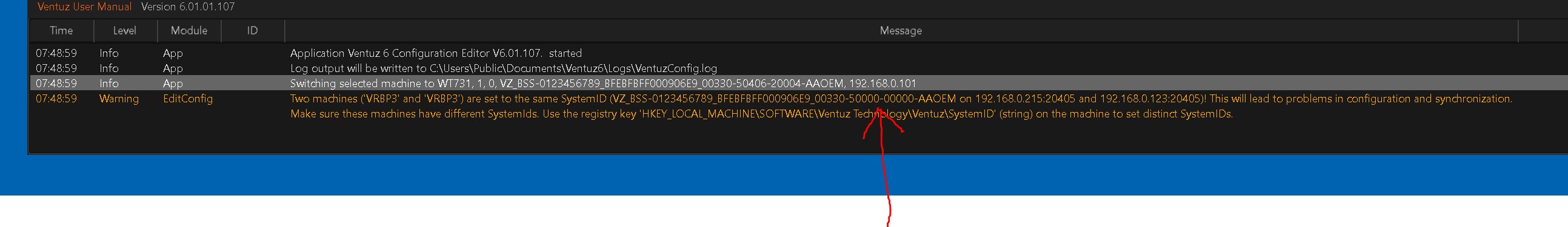 and you willl get the same SystemID Error in the Ventuz configuration editor.