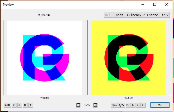 With the actual release of V6.2 we have added support for new DDS Texture modes... the so called Block Compression modes.