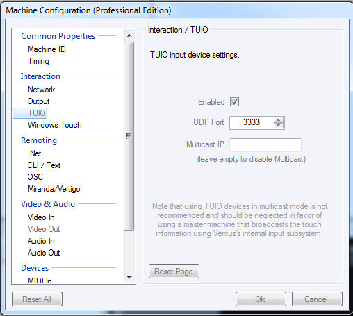 Hello I am using a Touch Radar with Ventuz, but I get that Ventuz only respond as mouse emulation. Should respond as TUIO? What should be the Ventuz figuration?